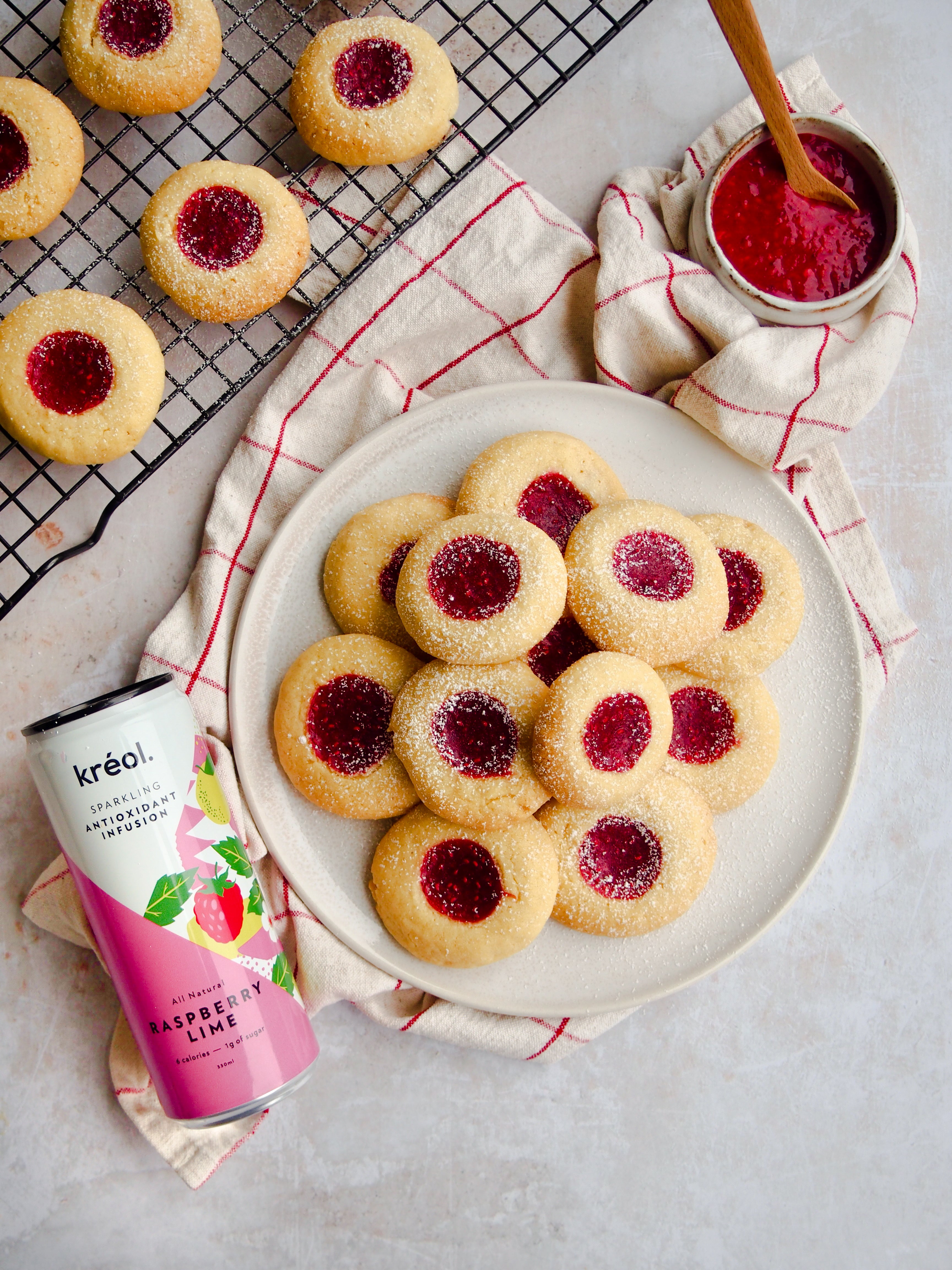 4. Spoon ~1/2 teaspoon of jam into each biscuit, then bake for 15-18 minutes, or until golden. Once baked, transfer to a wire rack to cool, then dust with icing sugar and serve.