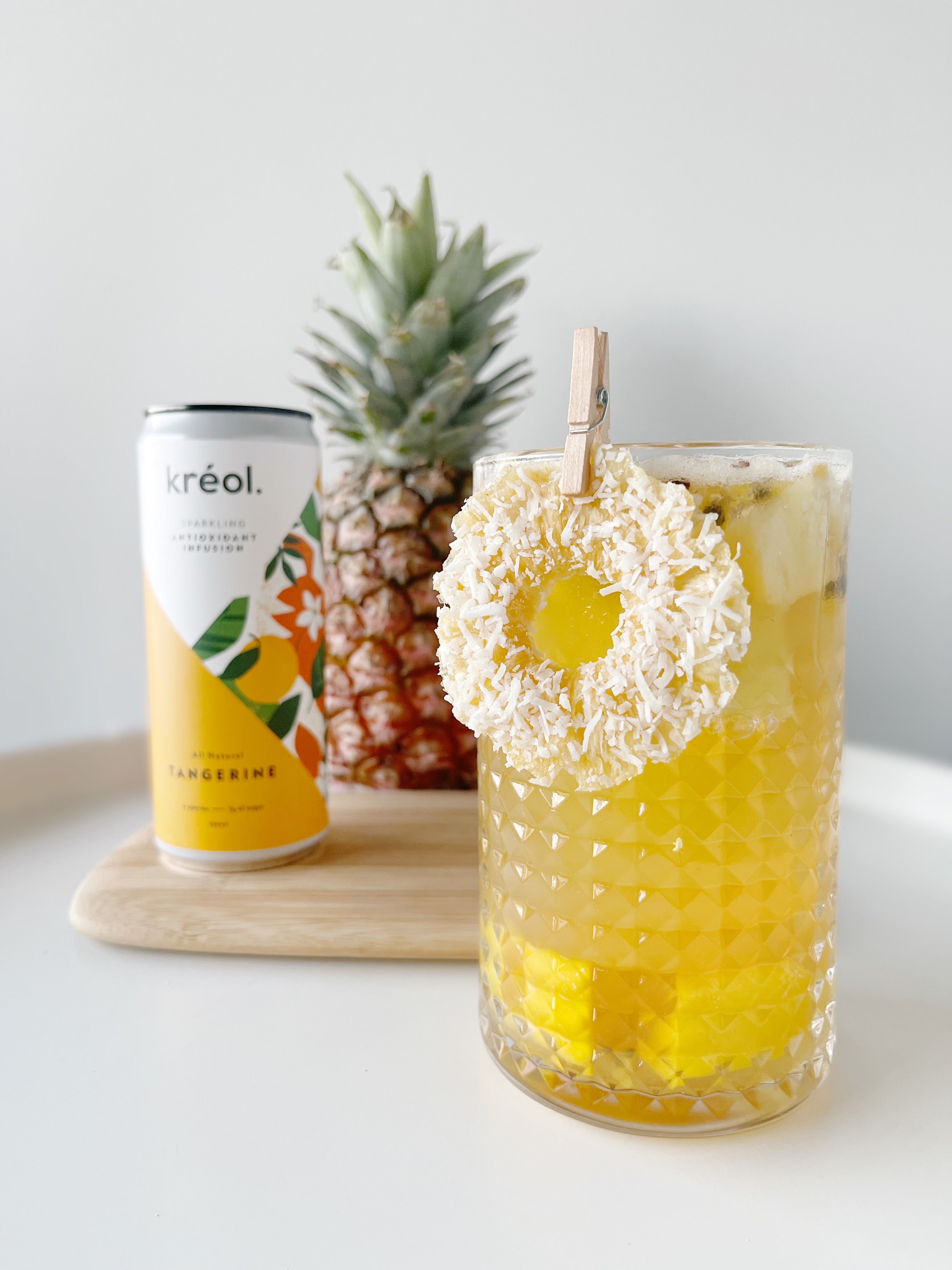 5. Garnish with Sip Social Collective Coconut Pineapple Spinner